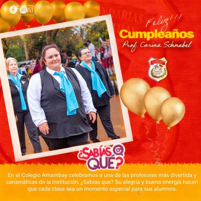 PorVictor Britezdiciembre 16, 2025Este 15 de diciembre, la Escuela Hernandarias y el Colegio Amambay celebran con especial alegría el cumpleaños de la Profesora Carina Schabel, una...