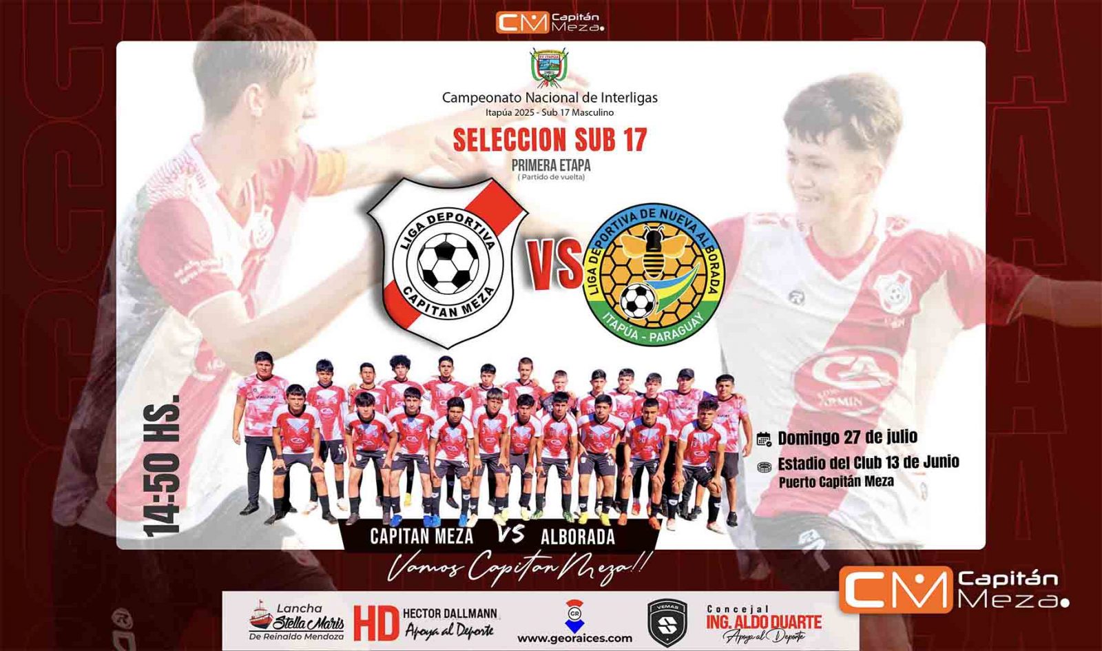En el partido de ida, disputado en condición de visitante, los juveniles de Capitán Meza lograron un valioso triunfo por 2 goles contra 1, resultado que les da ventaja en esta serie eliminatoria de la etapa departamental.