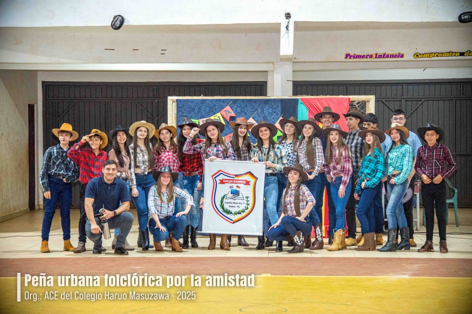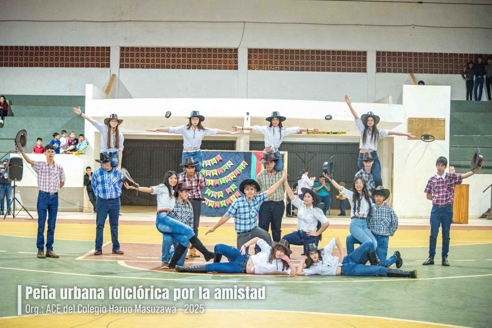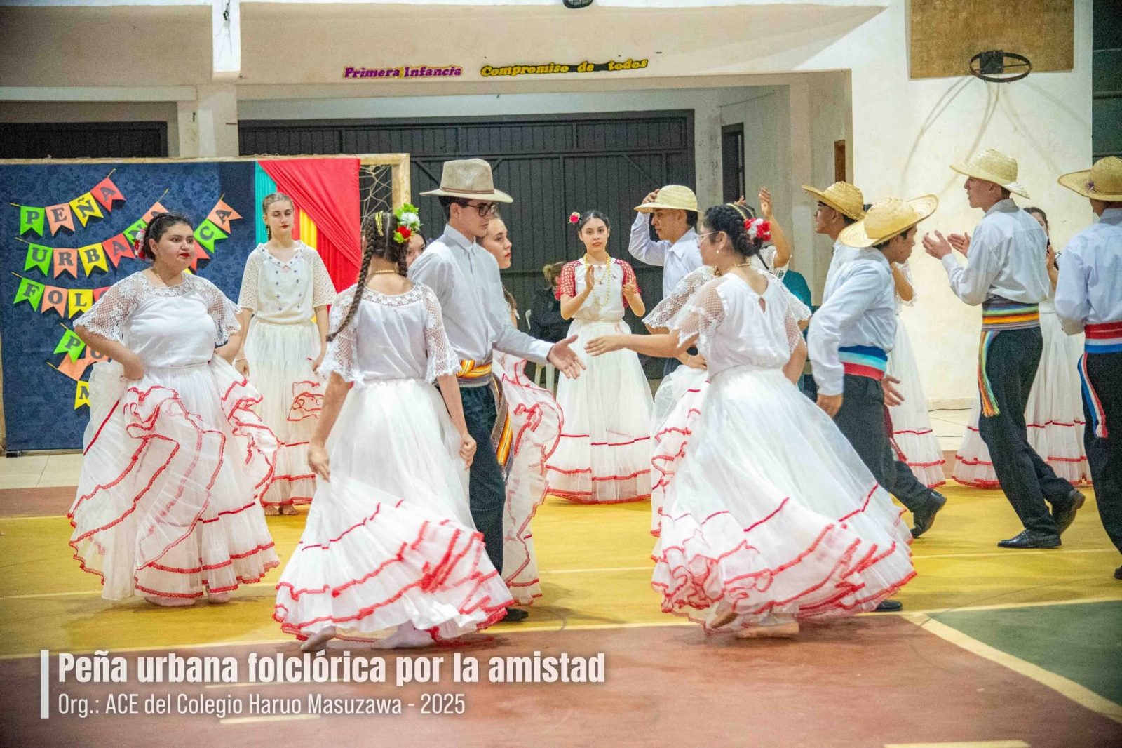 Con motivo del Día de la Amistad, el Colegio Nacional Haruo Masuzawa, a través de la ACE, organizó una vibrante peña folclórica el pasado viernes 1 de agosto en el Polideportivo Municipal de Capitán Meza.